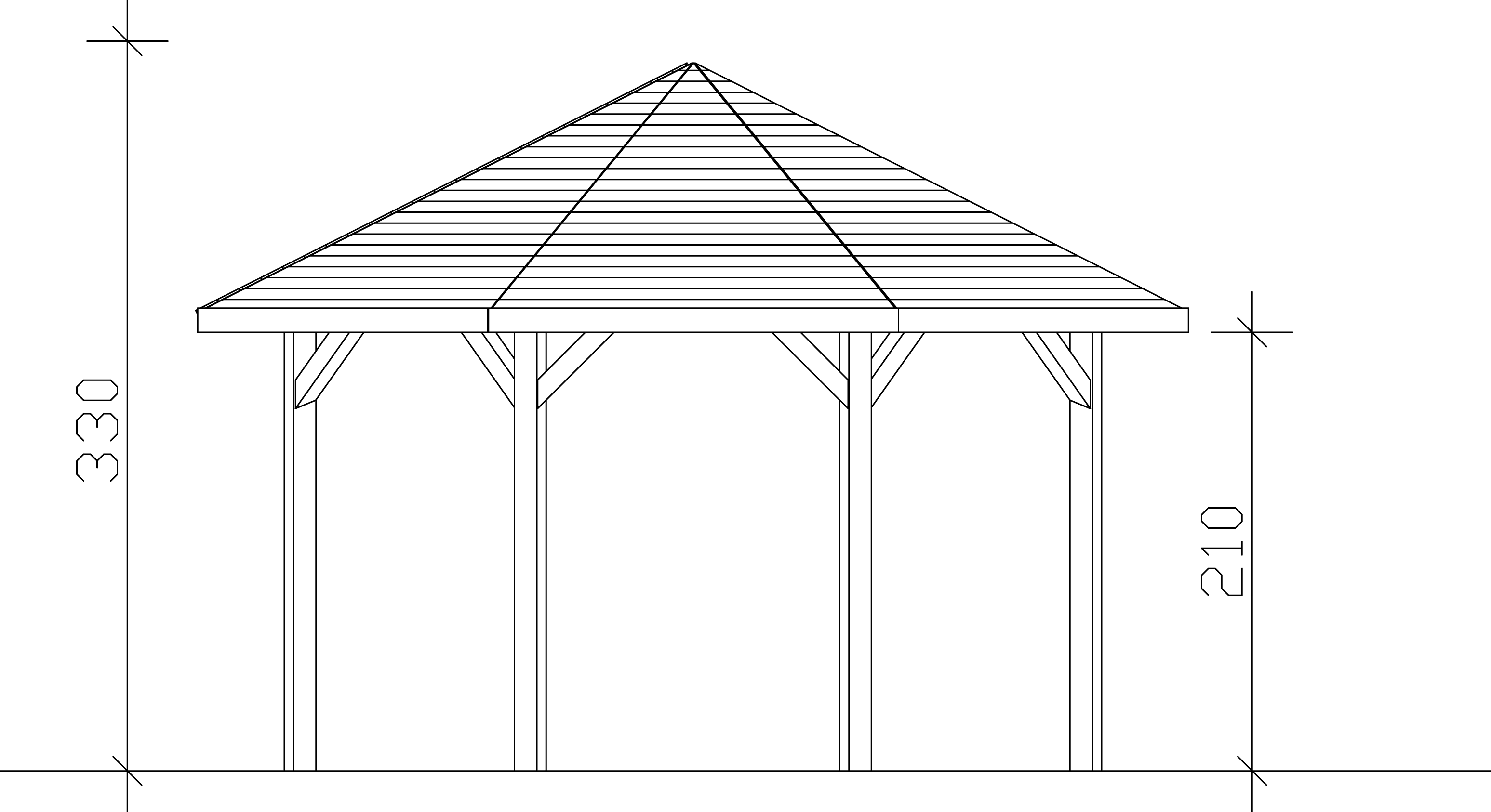 - Fertige Giebelhöhe des Pavillons 330 cm. Höhe der Traufe des Durchgangs des Spaliers 210 cm