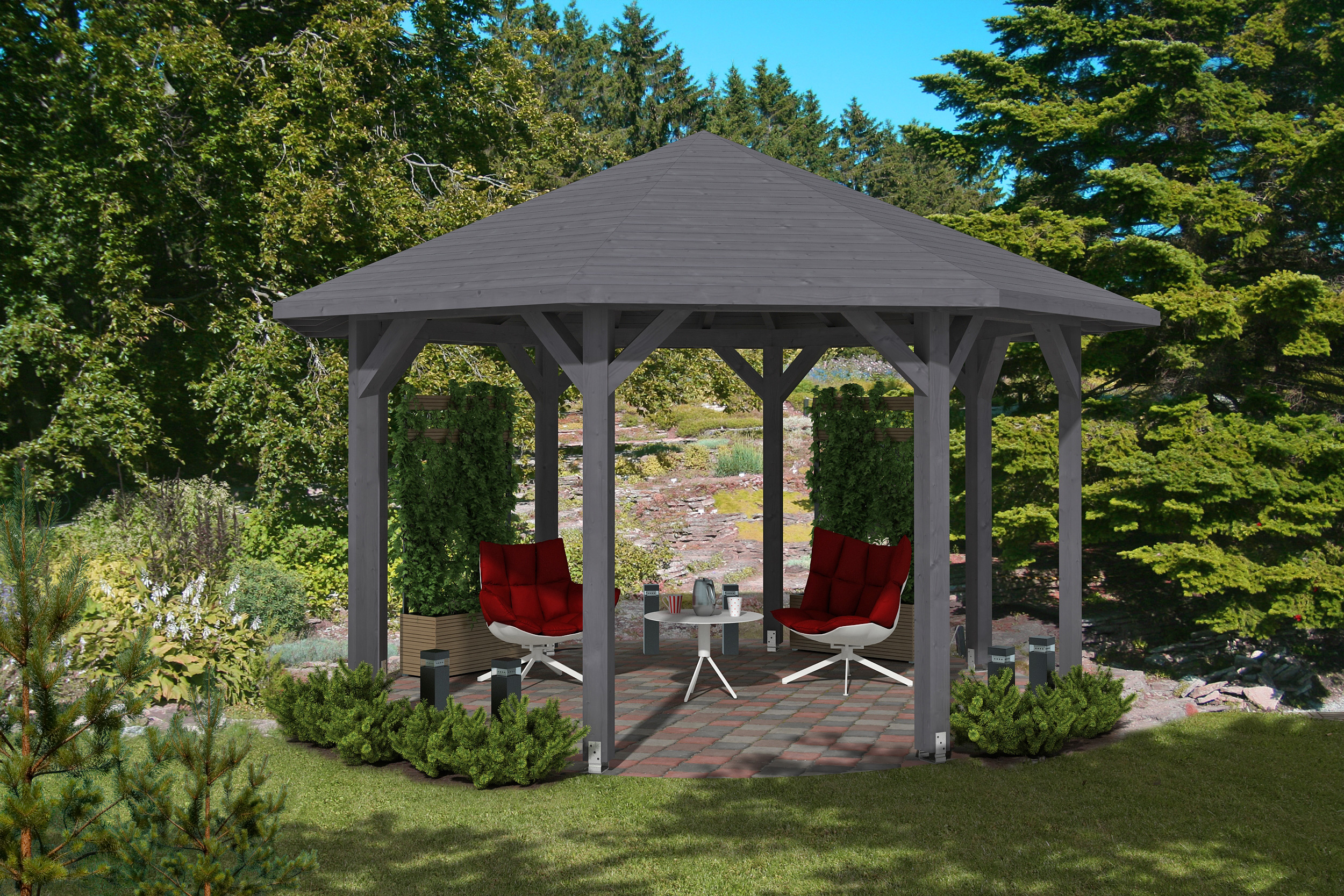 Achteckiger Gartenpavillon Nizza 3 Größen