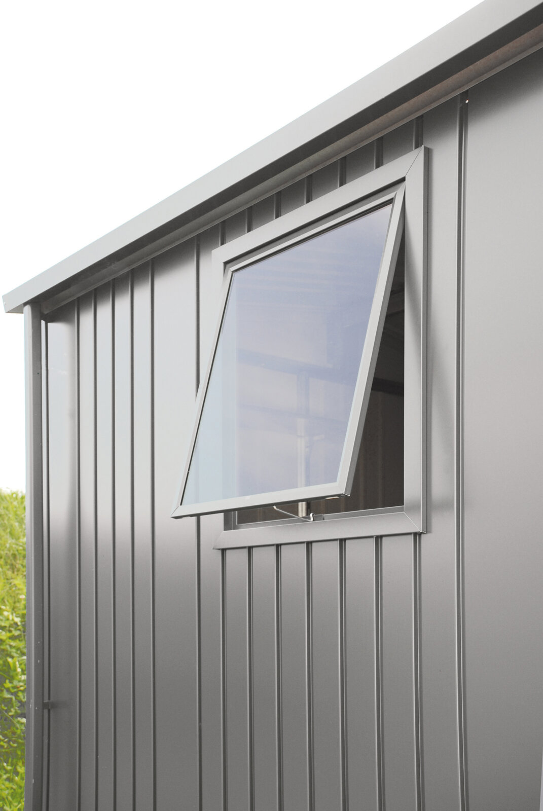 Es bringt noch mehr Sonnenlicht in den Geräteschuppen und bietet einen freien Blick auf den Garten.