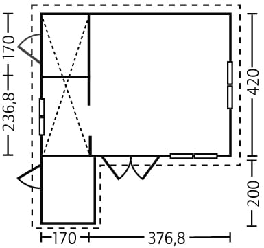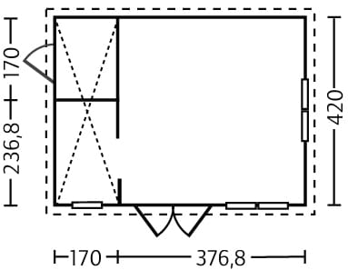- Höhe Seitenwand: 236 cm, Höhe Orom: 325 cm