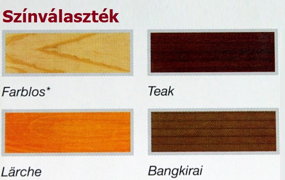 - Für den Oberflächenschutz von wärmebehandelten Hölzern wie Teak, Bangkirai, Massaranduba, Iroko, Eiche, Rot- und Korkkiefer
