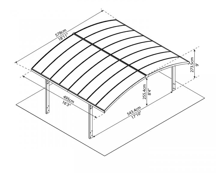 Aluminium-Garagendach mit Polycarbonatdach, Canopia Arizona Wave/Breeze ready carport 495 x 288 cm