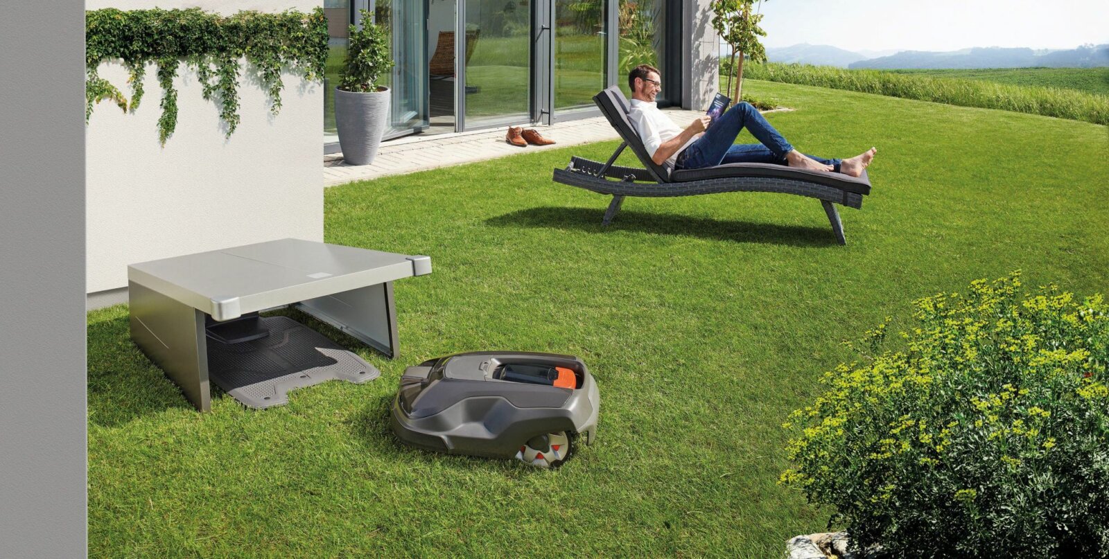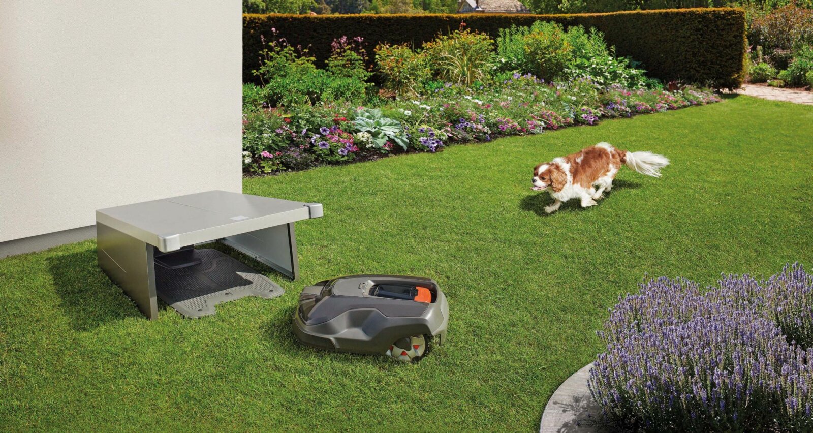 - Die Biohort Charly Robotic Lawnmower Garage® bietet alle Annehmlichkeiten, die ein Roboterrasenmäher und sein Besitzer benötigen