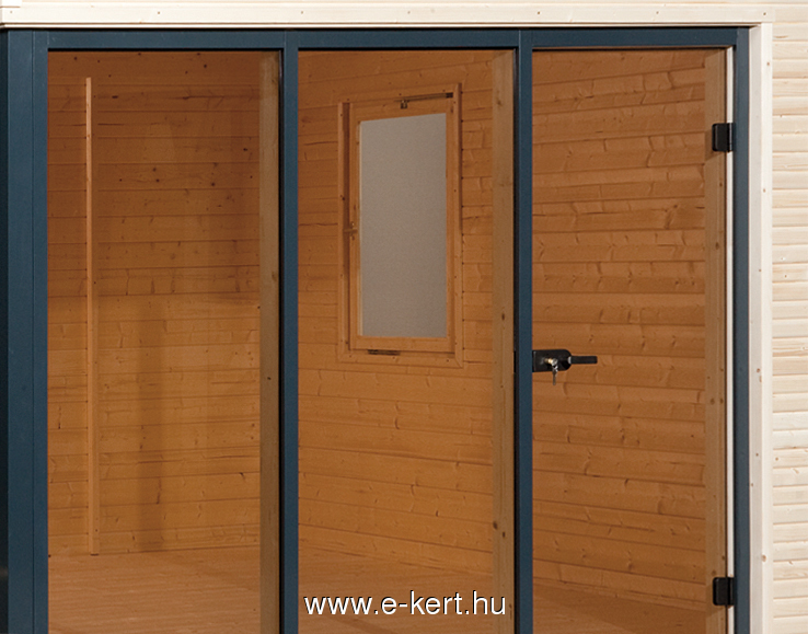 - Die Seitenwände sind aus massiven 45 mm dicken Vollholzbalken mit doppelter Nut-/Nutverbindung gefertigt