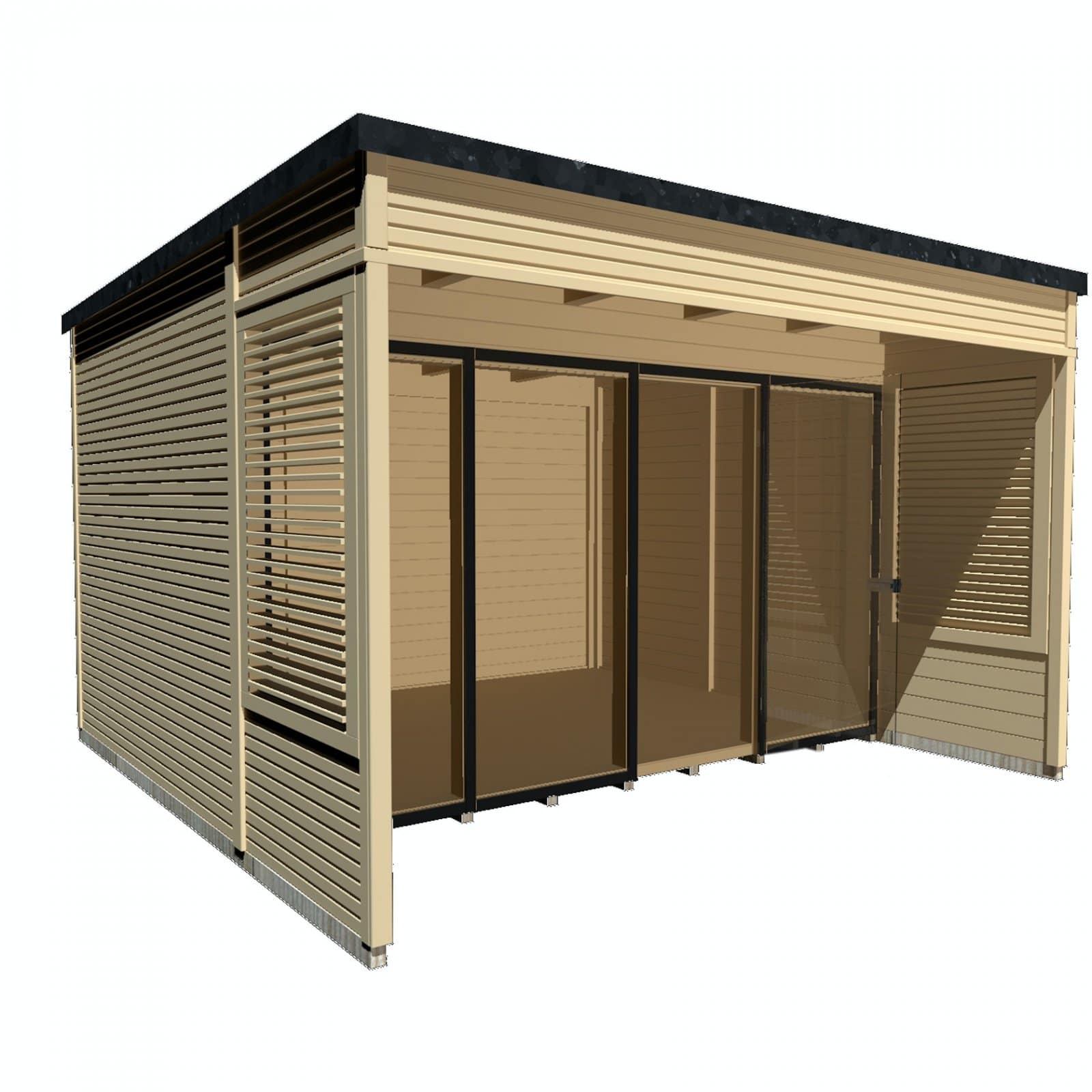 - Anspruchsvolles, klares, minimalistisches Design mit Panoramafenstern + Bleistiftwand Erhältlich in 2 Größen: 380 x 380 cm oder 380 x 480 cm