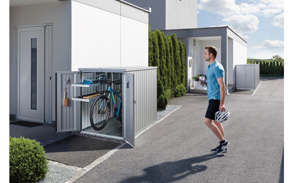 Abschließbare Mini-Garage für Fahrräder von Biohort mit optionaler Farbe und praktischem Zubehör
