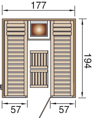 - Höhe der Sauna 199 cm /Außenmaß 210 cm)