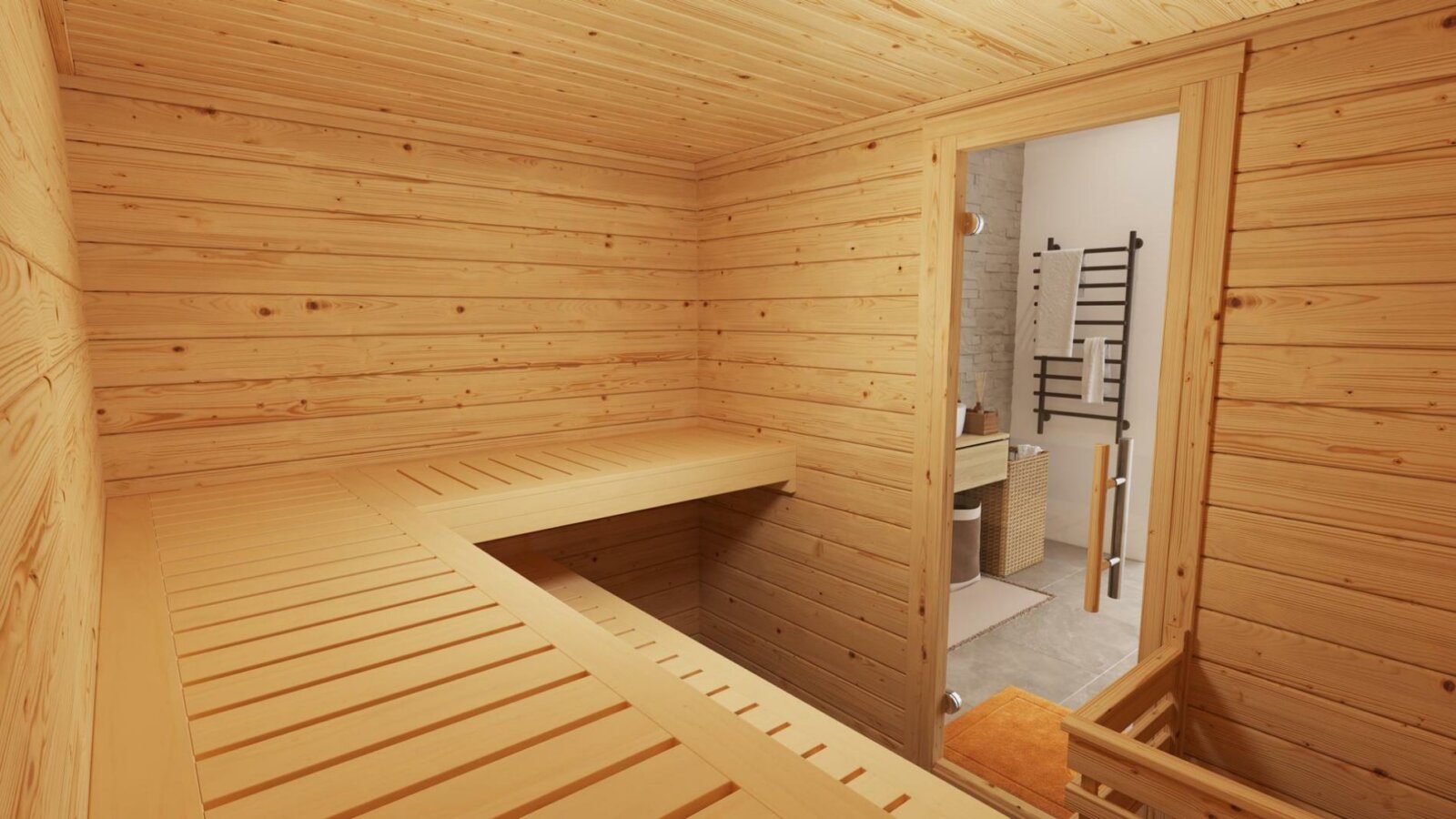 • 45 mm starke Massivholzwände der finnischen Saunakabine aus starker, natürlicher nordischer Kiefer