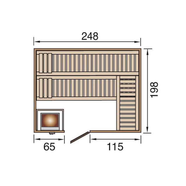 • Die oben genannten Saunamaße sind die Eckmaße der Installation (außen)