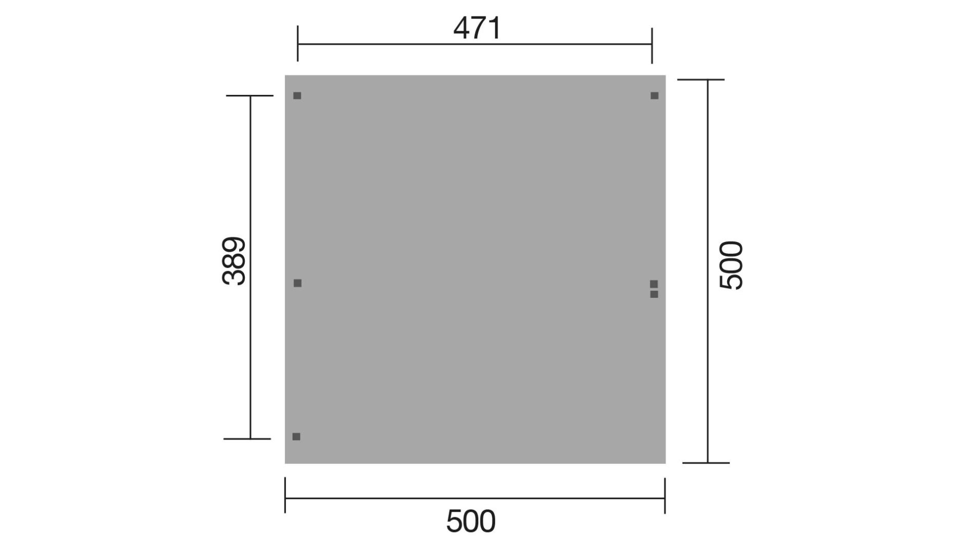 - Die gesamte Dachfläche unserer offenen Garage – Ansicht von oben – beträgt 500 x 500 cm