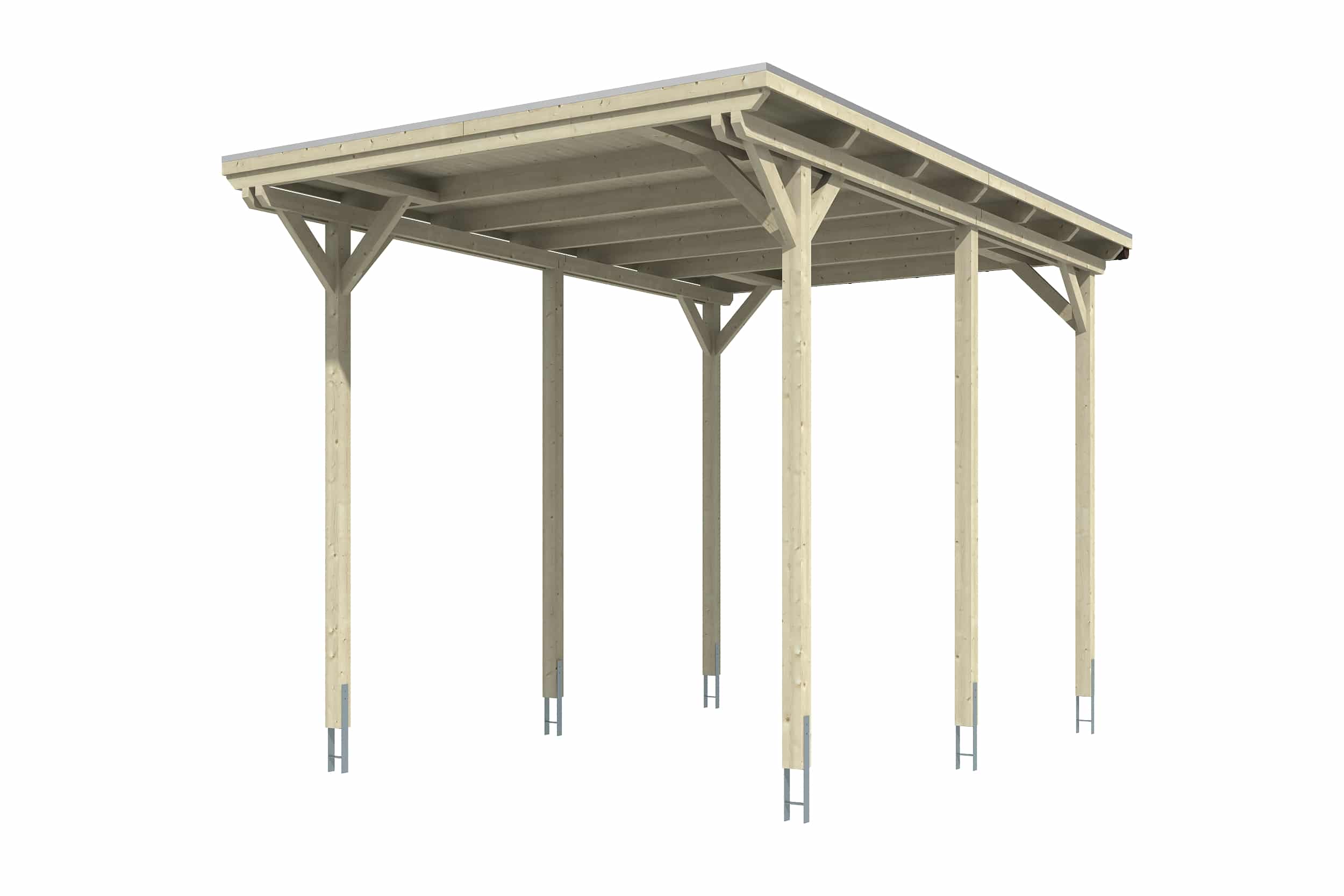 - Massive Säulen, die die Dachkonstruktion der Garage tragen Profilgröße: 120 x 120 mm verleimt