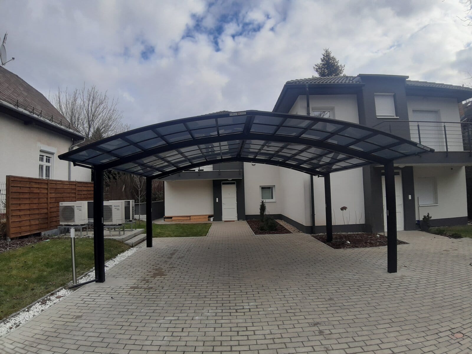 - Die tragende Struktur der Garage ist eine korrosionsbeständige Aluminiumstruktur. Die elegante, luftige Metallrahmenstruktur fügt sich gut in moderne Gebäudeumgebungen und minimalistische Gebäude ein.