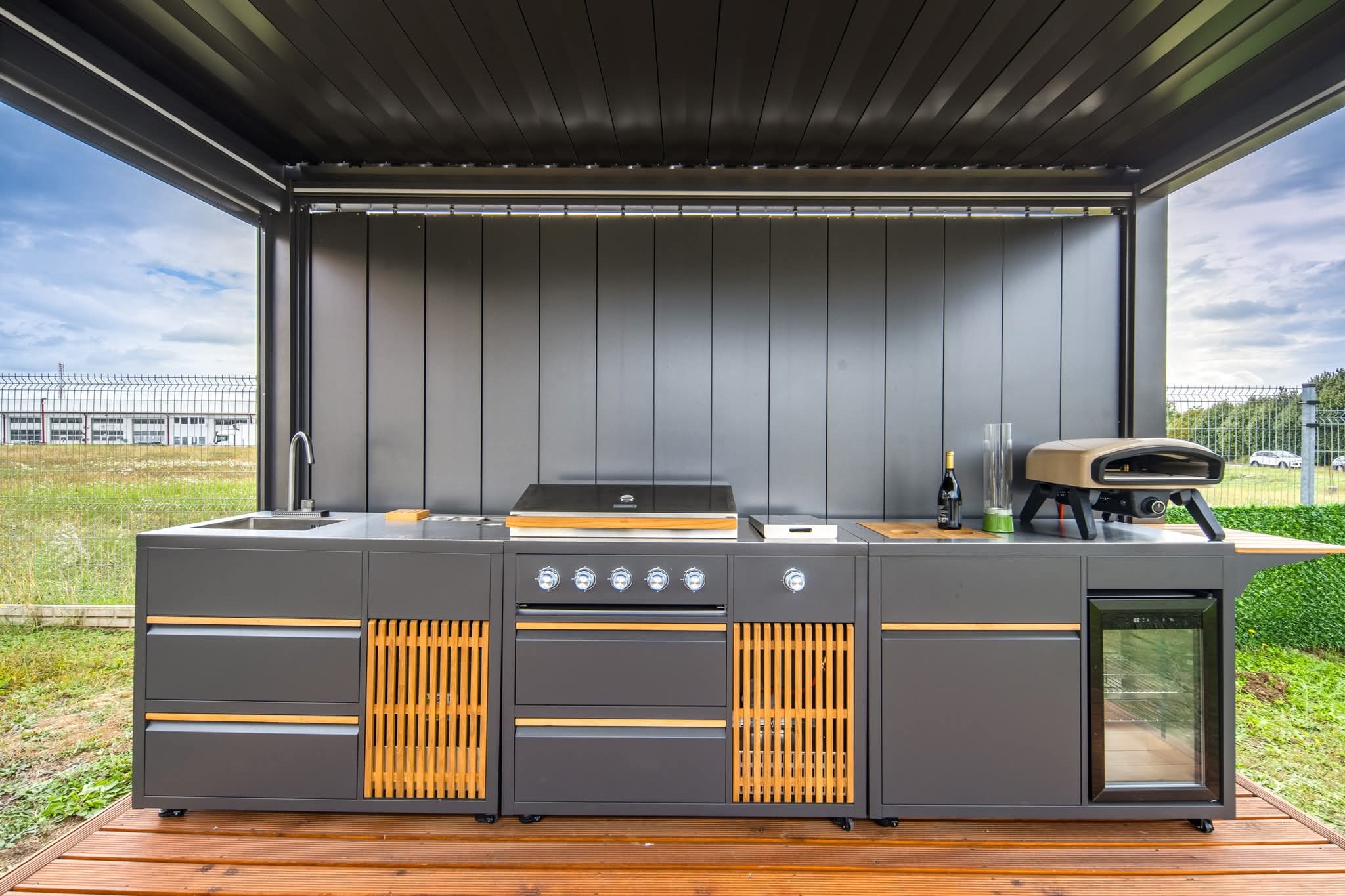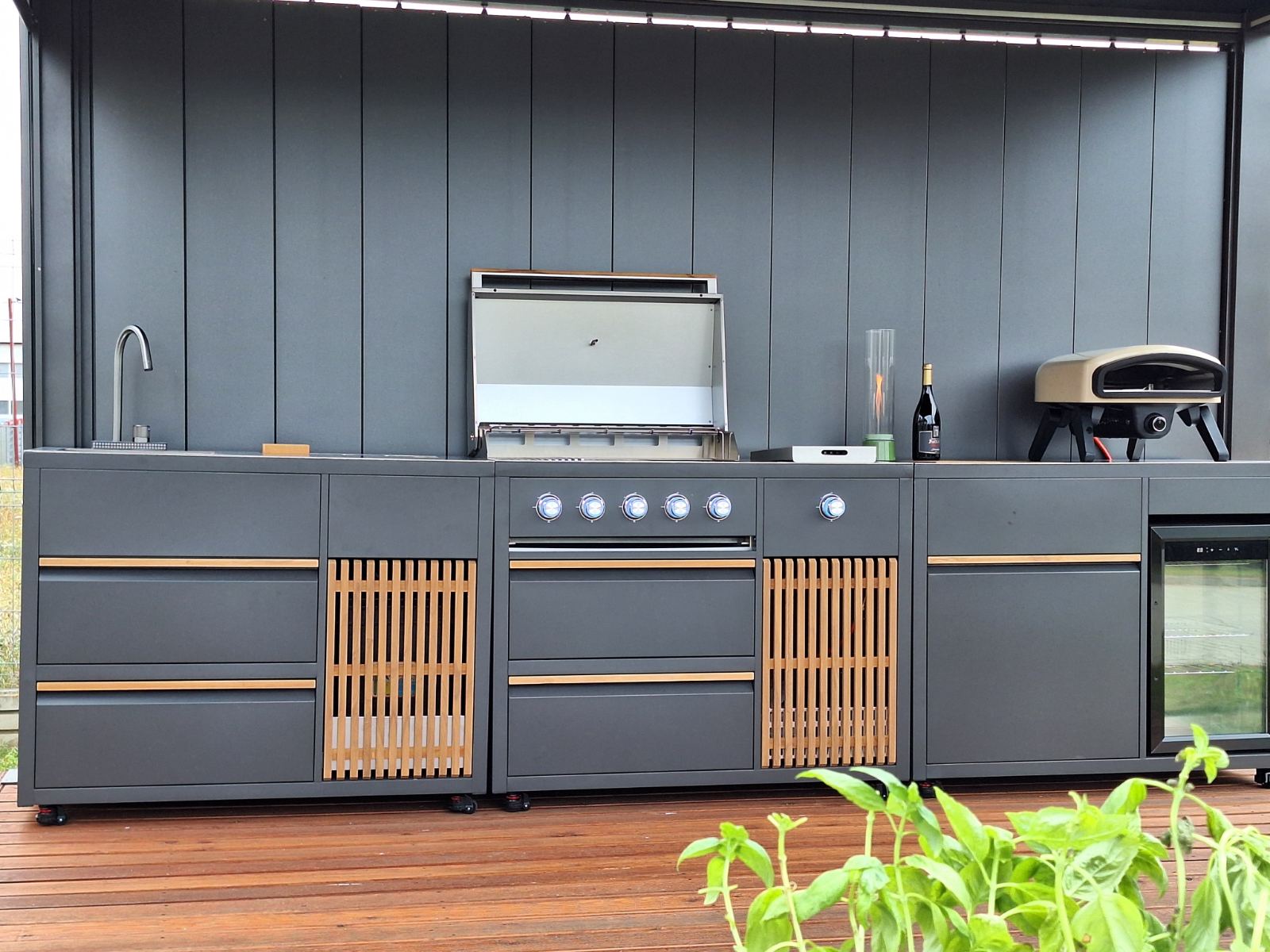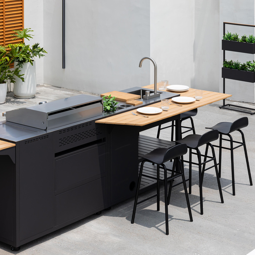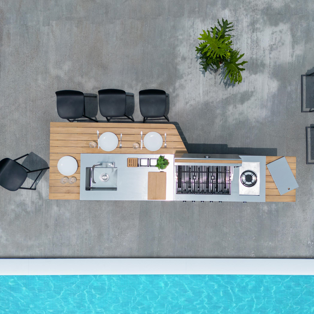 Elegante Linien, eine stilvolle Außenküche, die dank ihres modularen Designs mit einer beliebigen Anzahl von Modulen erweitert werden kann.
