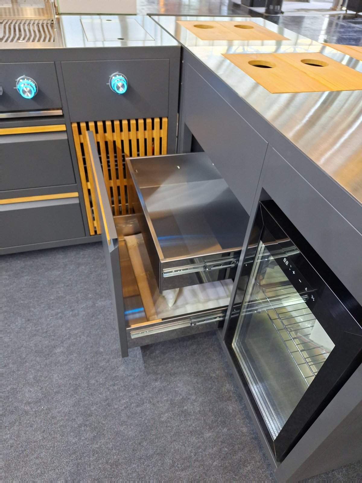In unserem Ausstellungsraum können Sie die Küche besichtigen. Viele andere Grillzubehörteile sind ebenfalls ab Lager verfügbar und können sofort geliefert werden.