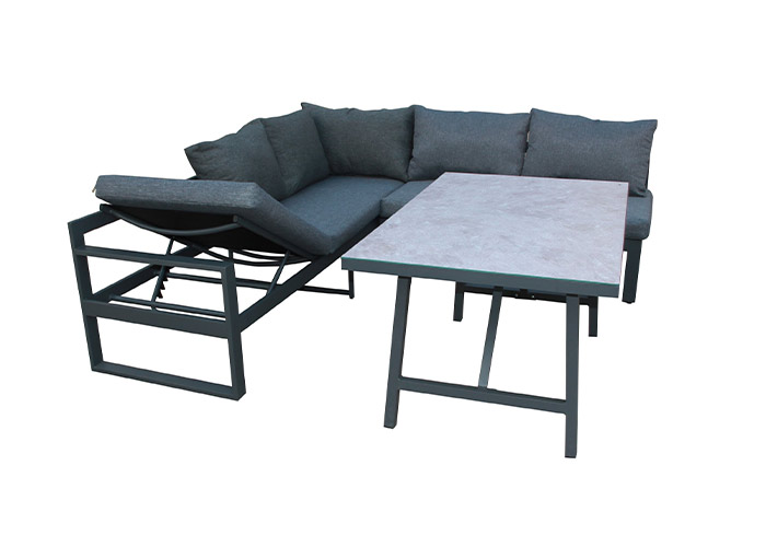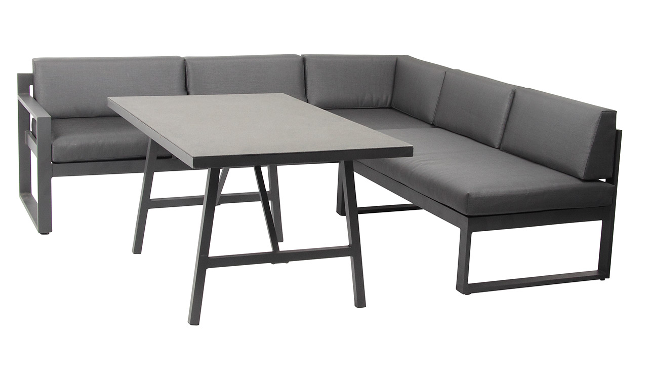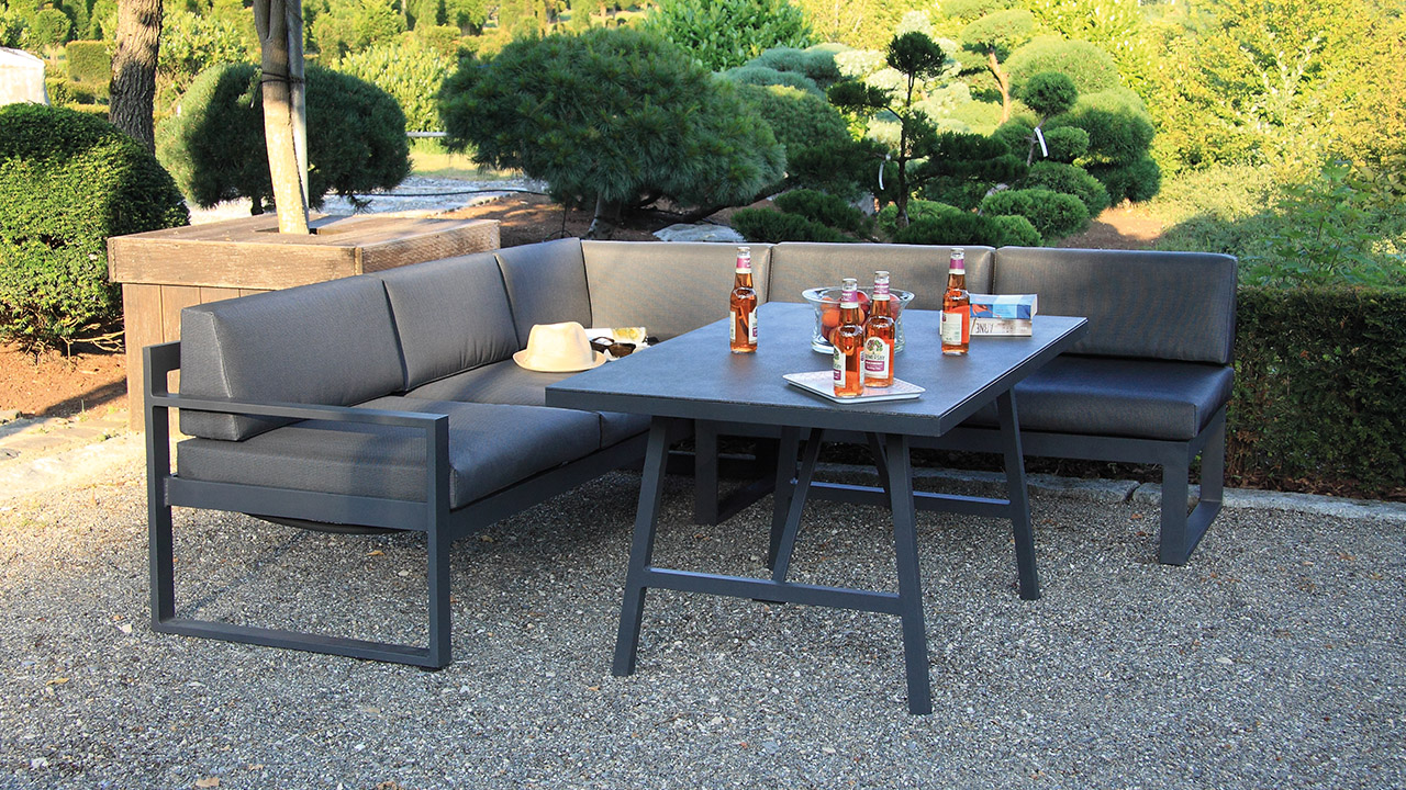 Gartenmöbel aus Aluminium, Eckbank 130 x 80 cm mit Gartentisch. Terrassenmöbel Acamp Signature Lounge-Set