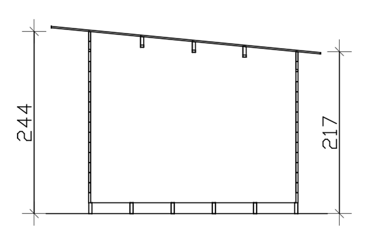 - Dachüberstand 50 cm über der Eingangswand. Traufhöhe an der Vorderseite 244 cm
