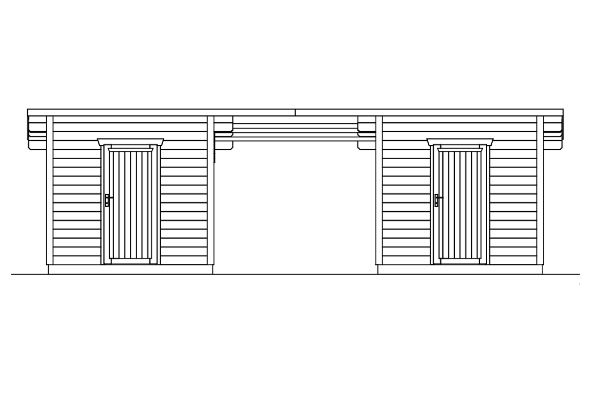 Ameland Flachdach Gerätehaus Design. Das Dach ist natürlich nach hinten geneigt, aber die Giebelenden lassen die Dachkonstruktion optisch horizontal erscheinen.