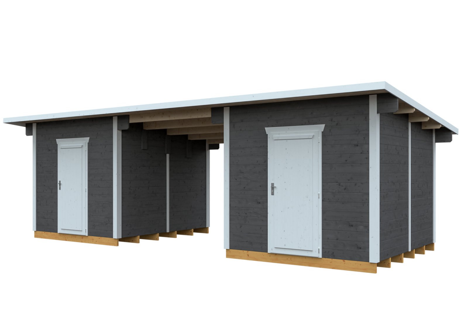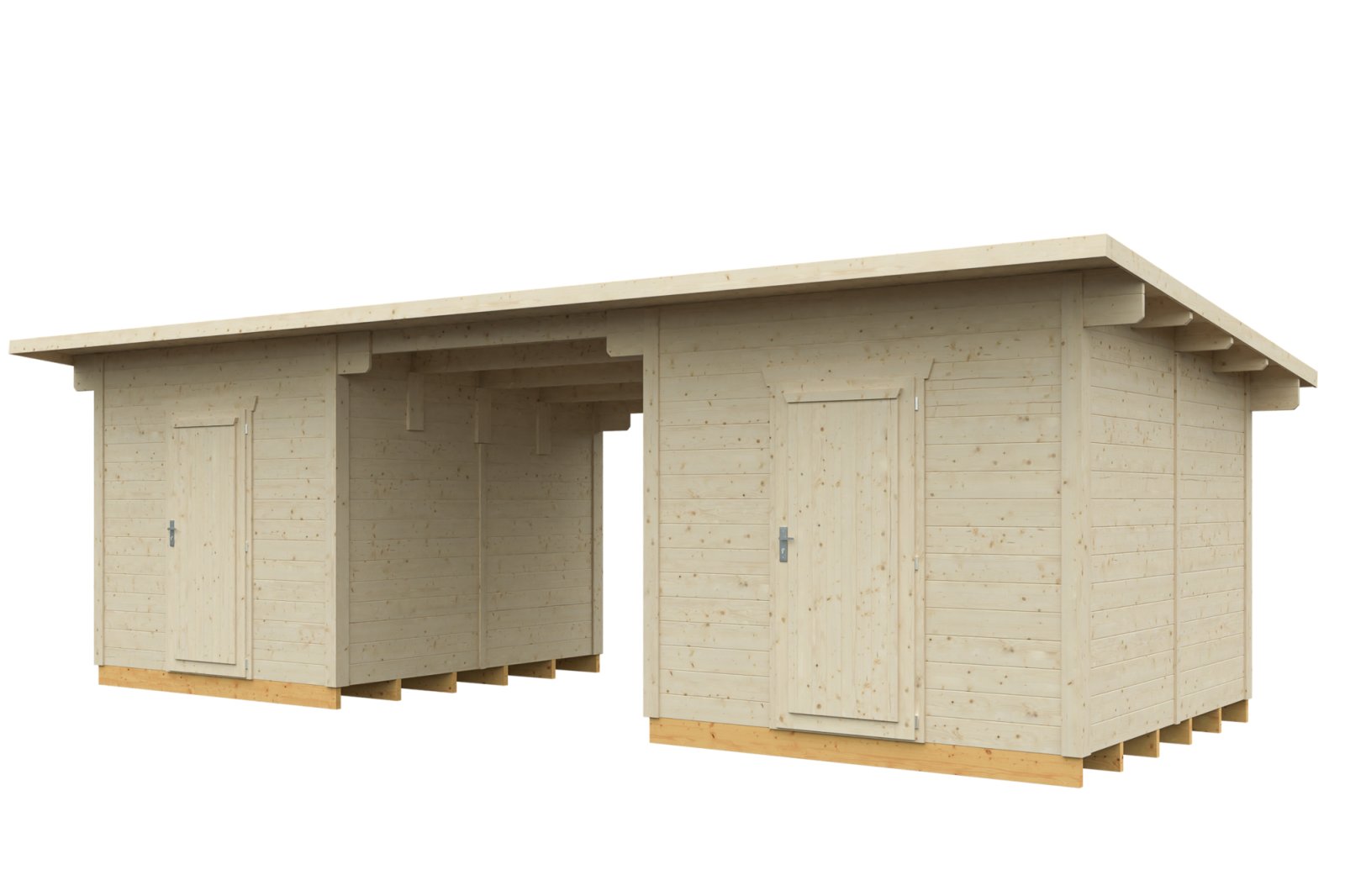28 mm starke Seitenwände; mit 19 mm Massivholzdach und Massivholzboden 750 * 280 cm