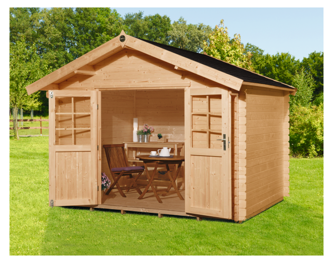 Weka 209 Gerätehaus , erhältlich in 4 Größen, mit Flügeltüren, Standardausführung ohne Bodenbelag.