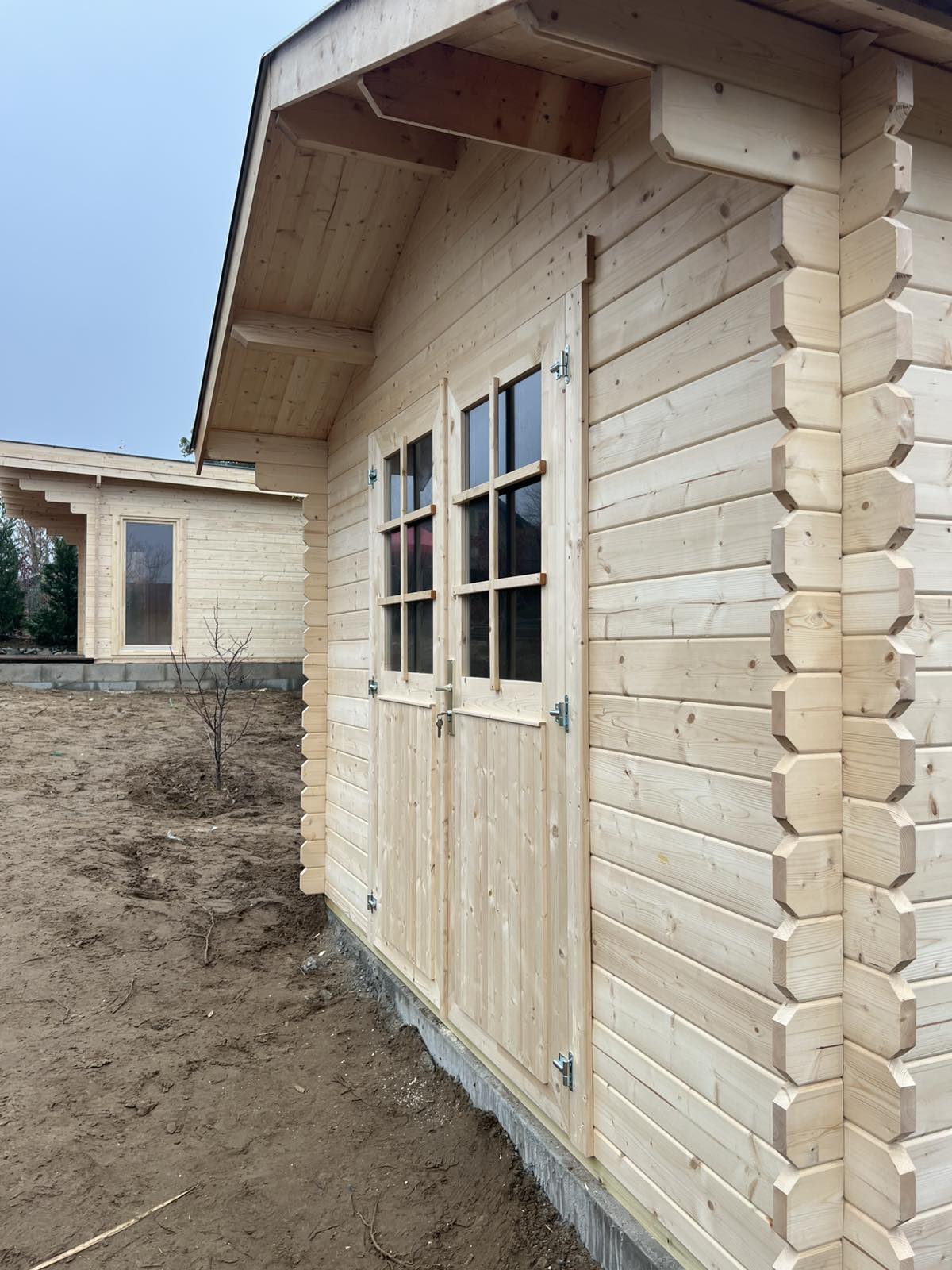 - Einfach zu bauendes Holzhaus mit Borrahmen Wandstärke 28 mm; Höhe 196 cm