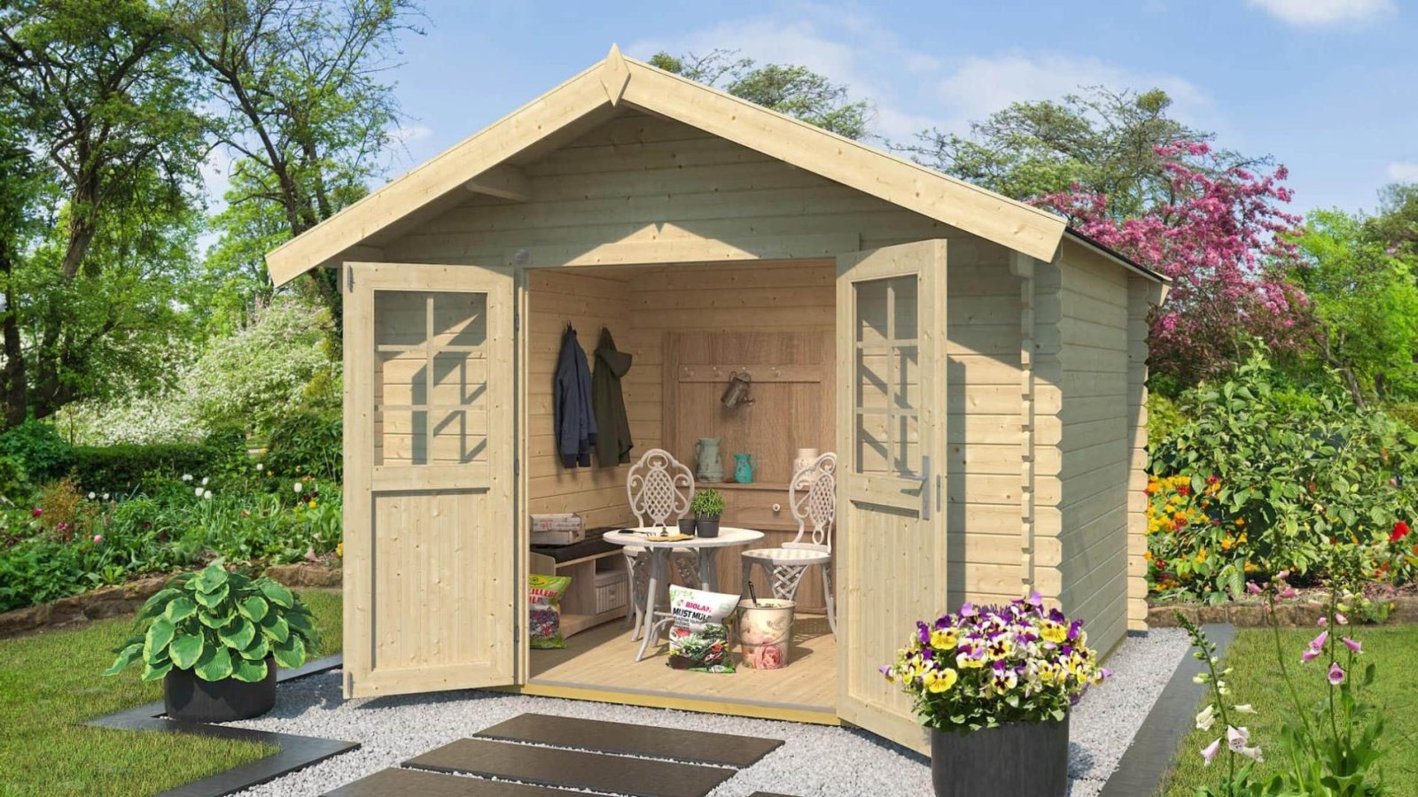 Details zu unserem Sonderangebot Gerätehaus mit massiven 28 mm dicken Wänden und Doppeltüren: