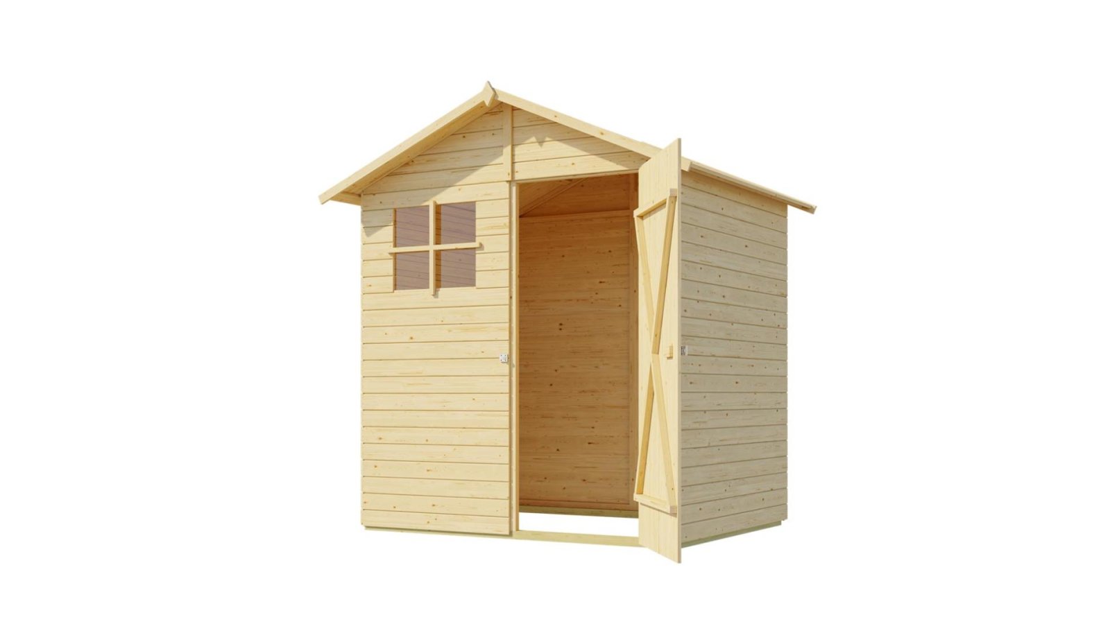 - Türöffnung des Gerätehauses: 69 x 167 cm / 2 für kleinere Modelle und 111 x 167 cm für die größte Doppeltür