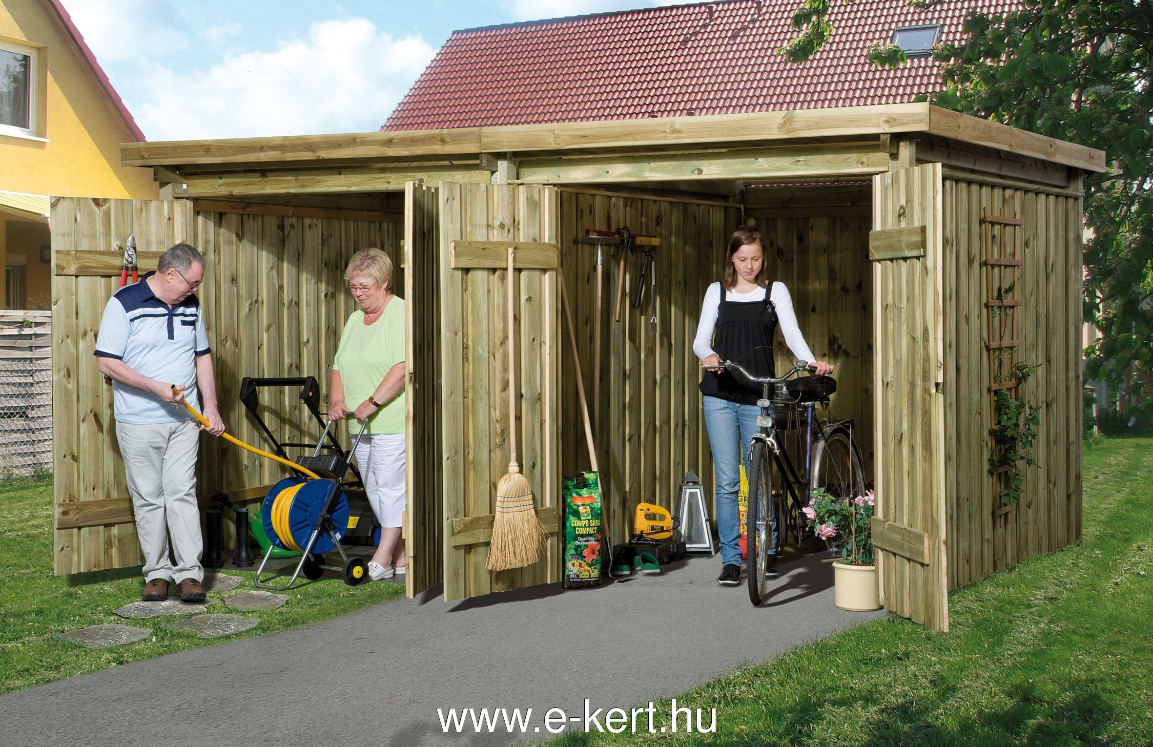 - Gartengeräteschuppen, Gartenlager, Fahrrad- und Holzlager aus imprägniertem/gesättigtem Holz