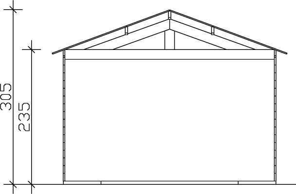 Geschlossene Garage mit Satteldach 370 x 525 cm; mit 45 mm Seitenwänden