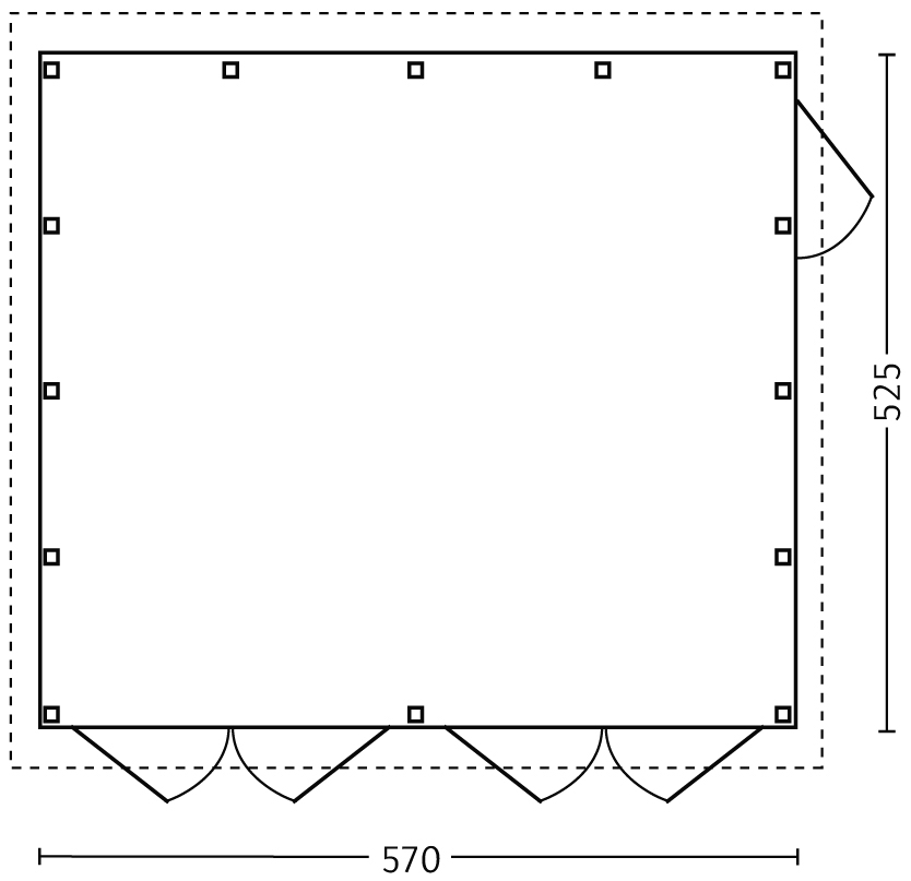 - Grundfläche der geschlossenen Garage: 570 x 525 cm