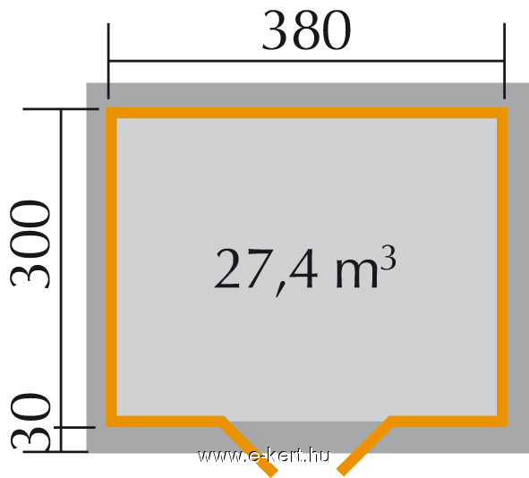 - Äußere Grundfläche unseres Gartenhauses: 390 x 300 cm