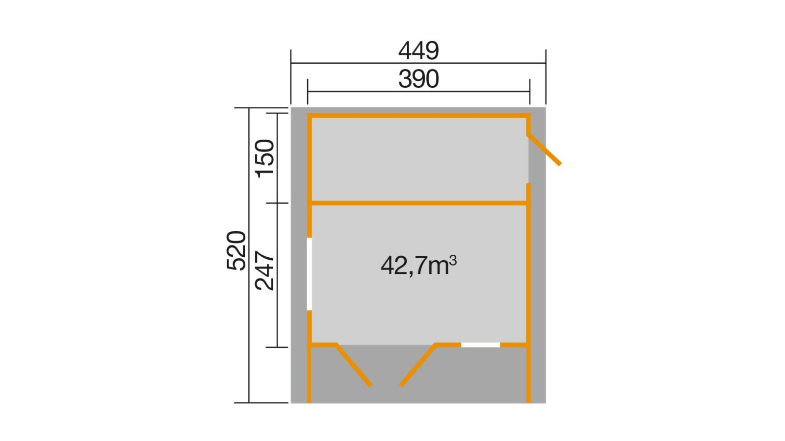 - Gebäudefenster: 1 Doppeltür + 1 einfache Tür + 2 Fenster
