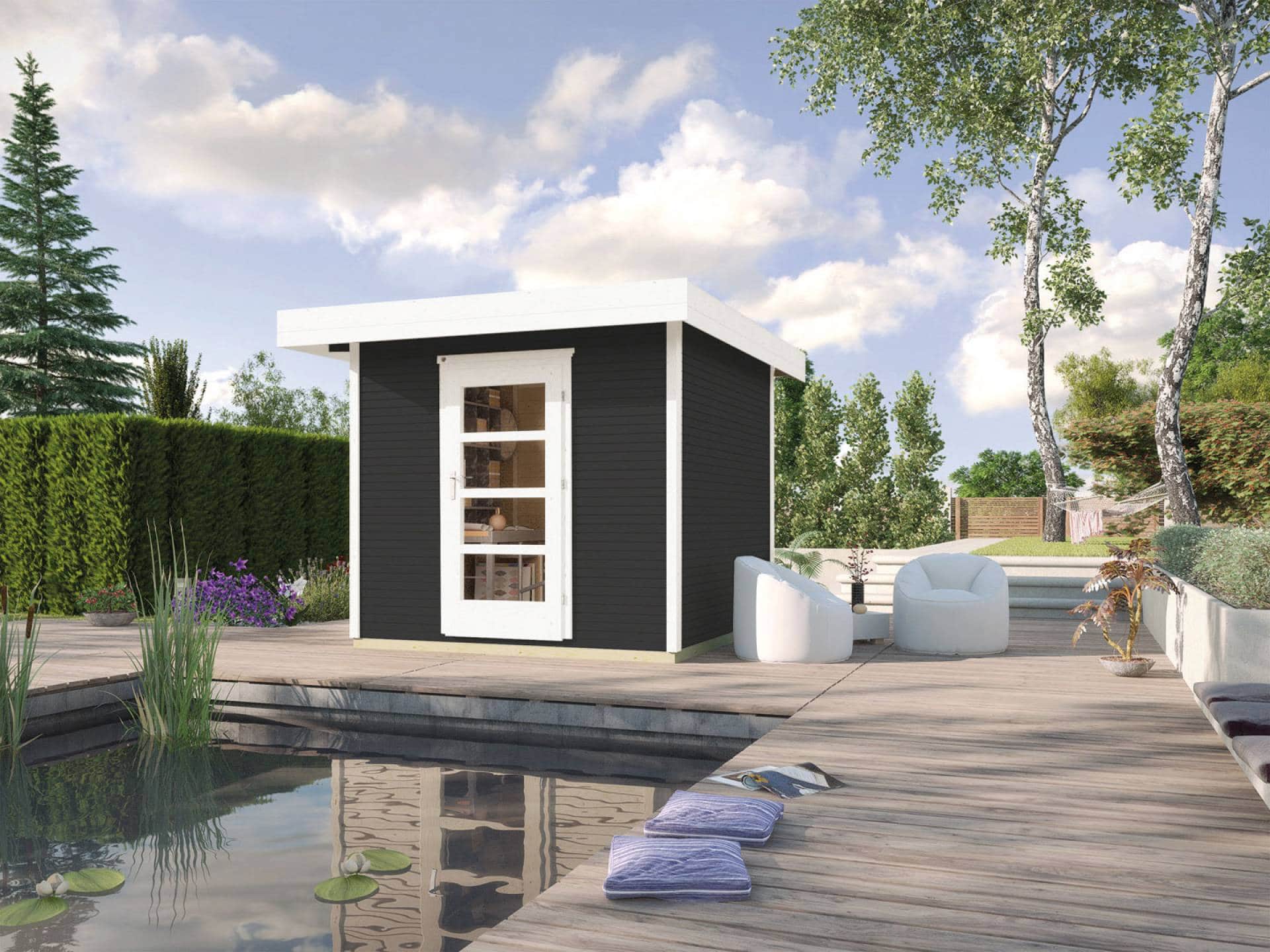 Dieses Chalet ist in 2 Größen 235 x 241 cm oder 295 x 300 cm Grundfläche und 2 Farben erhältlich