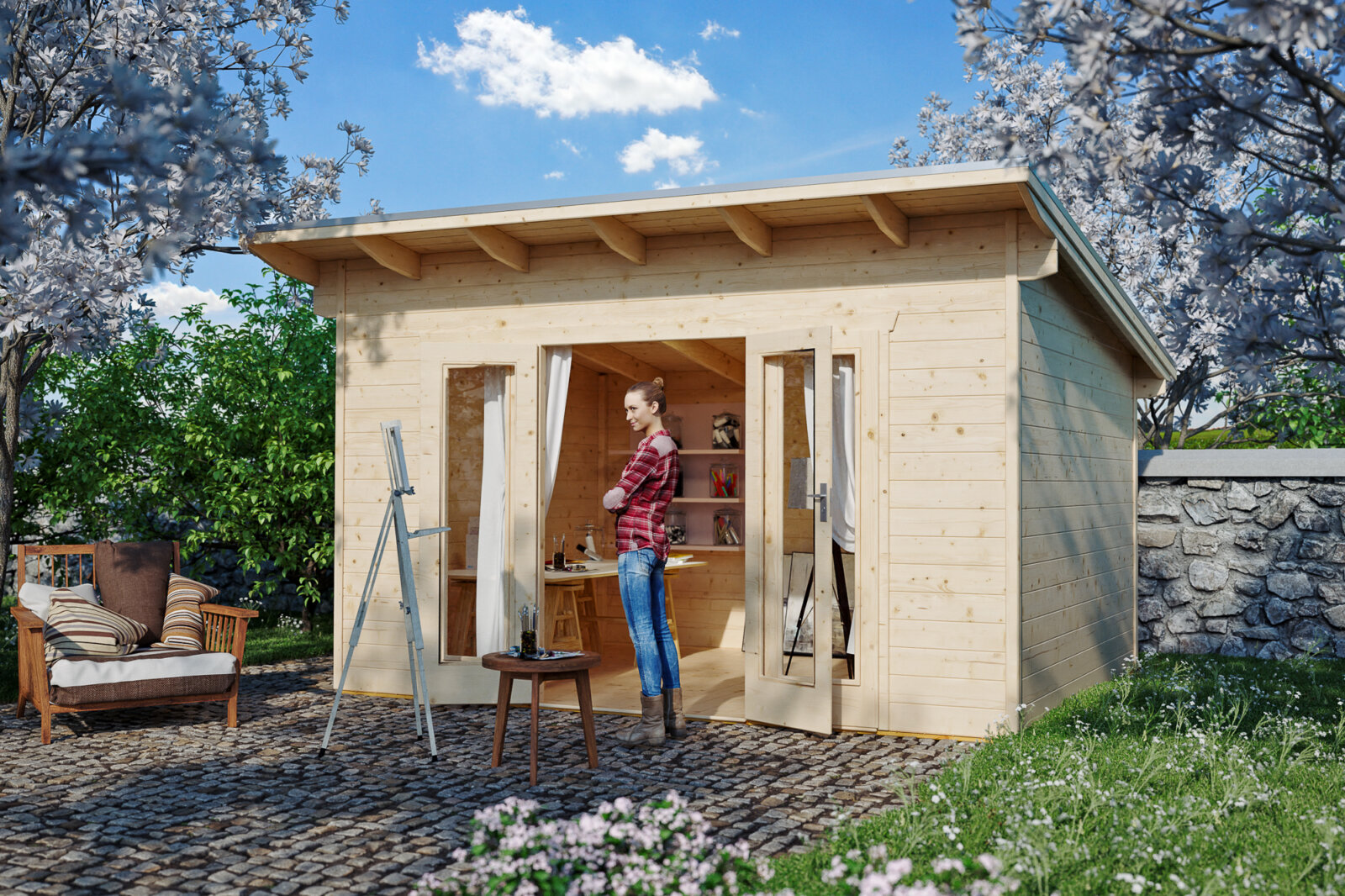 - Dieses Holzhaus ist auch in der Größe 400 x 300 cm erhältlich, indem Sie hier klicken