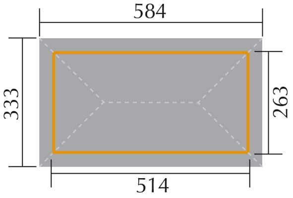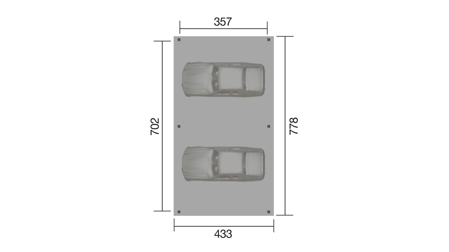 Unsere offene Garage / Pavillon Vario ist in 3 Größen erhältlich. Verwenden Sie die Auswahltaste neben dem Foto oben, um die Grundgröße Ihres gewünschten Salons zu wählen: 333 x 584 cm oder 380 x 678 cm oder 433 x 778 cm