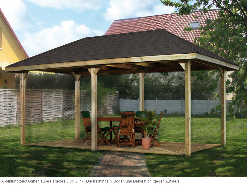 - Die Lieferung erfolgt standardmäßig ohne Bodenbelag, aber bei Verwendung als Gartenpavillon können wir auf Wunsch auch einen Bodenbelag hinzufügen.