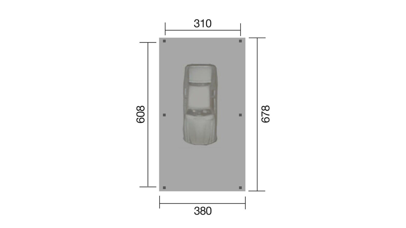 - Durchfahrtsbreite der offenen Garage je nach gewählter Größe: 239 cm oder 286 cm oder 333 cm siehe technische Zeichnung des Fundaments