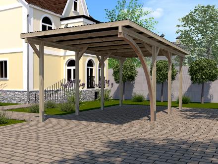 - Einfache, zweckmäßige offene Garage aus TÜV-zertifizierter, statisch geprüfter Struktur + 1 bogenförmig verleimter Säulenhalter