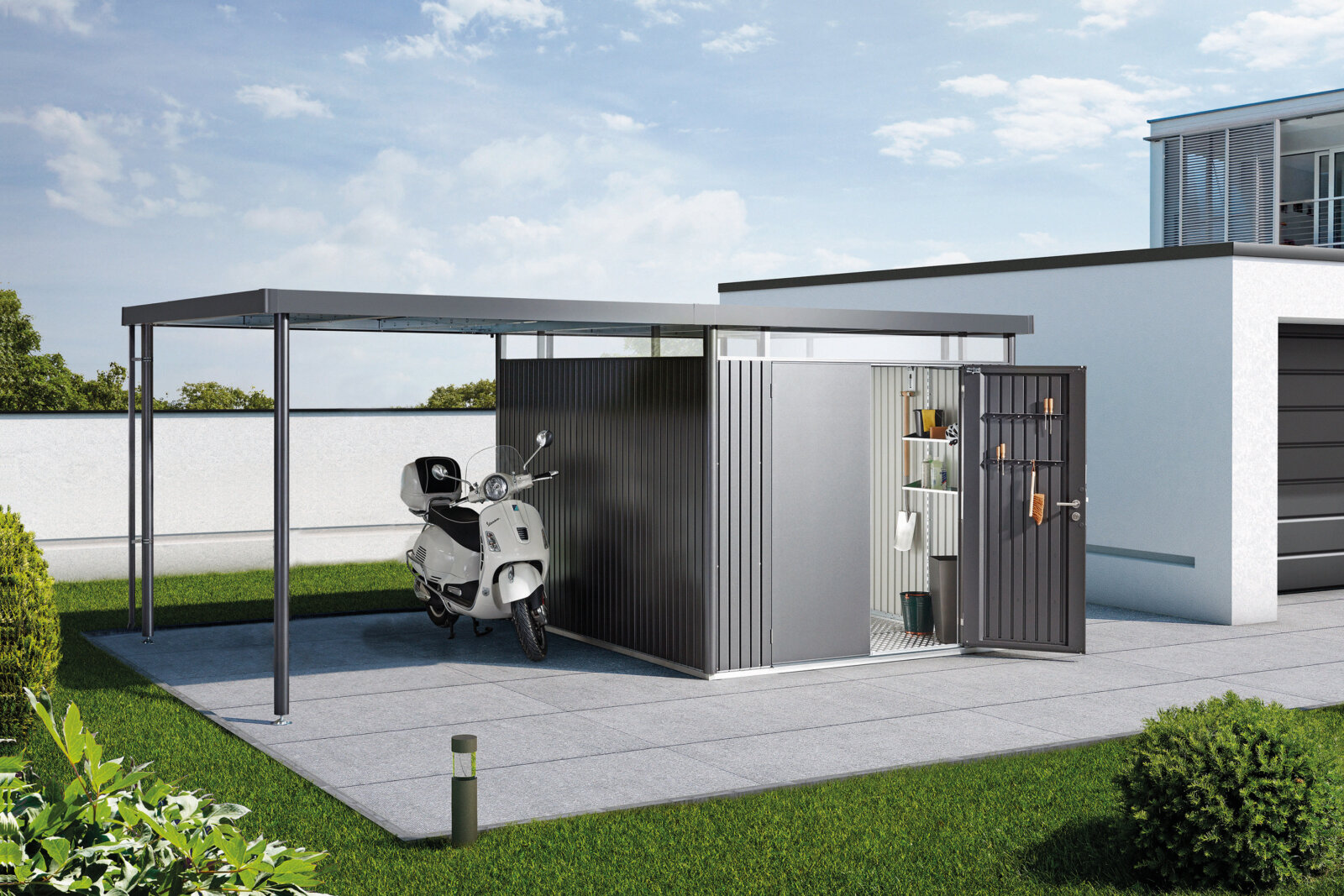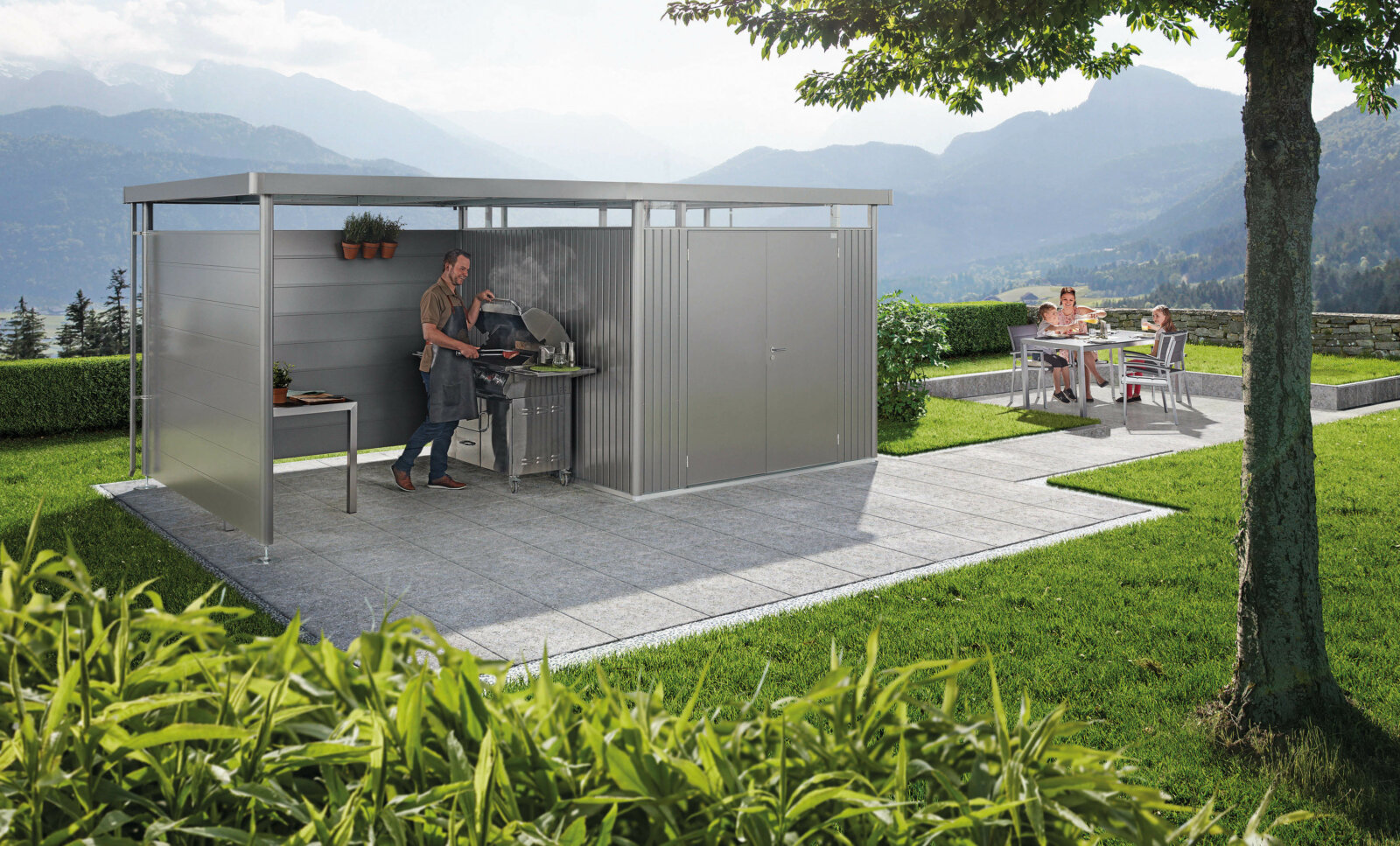 Biohort HighLine Gartenhaus mit seitlichem Stauraum in verschiedenen Größen