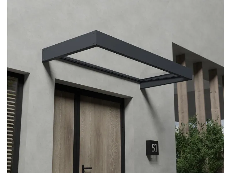 - Einfach zu installierendes (DIY) Regenschutz-Eingangsvordach. Stilvolle, elegante Regenschutzdachlösung mit Aluminium-/Stahlrahmen. Palram Canopia Sophia Sonnensegel.