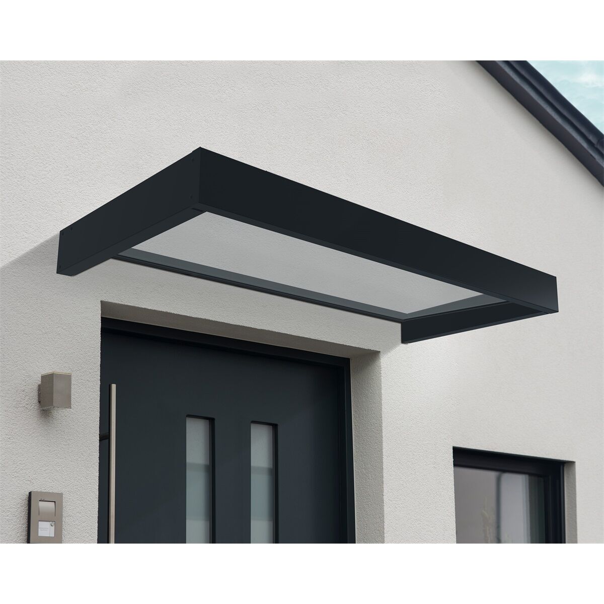 - 95 x 215 cm, d.h. die Breite neben der Wandebene beträgt 215 cm und der freitragende Dachüberstand senkrecht zur Wandebene beträgt 95 cm. Canopia Sophia Vordach auch in 95 x 160 cm erhältlich