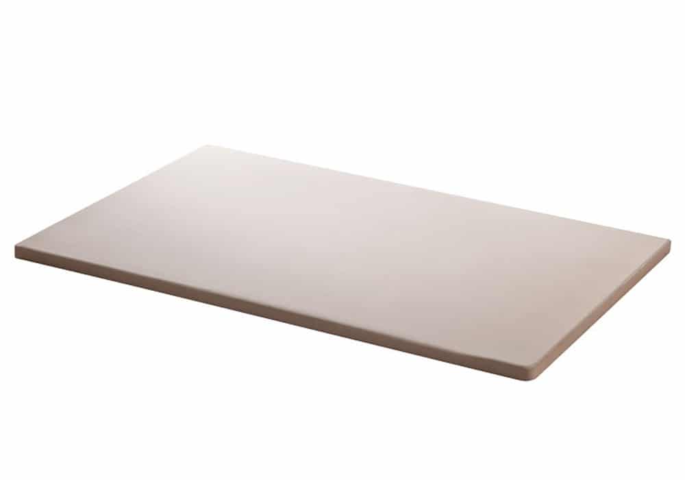 Der Pizzastein ist aus Cordierit gefertigt. Dieses natürliche Material ist besonders hitzebeständig (bis zu 1000°C) und gibt die gespeicherte Hitze gleichmäßig ab.