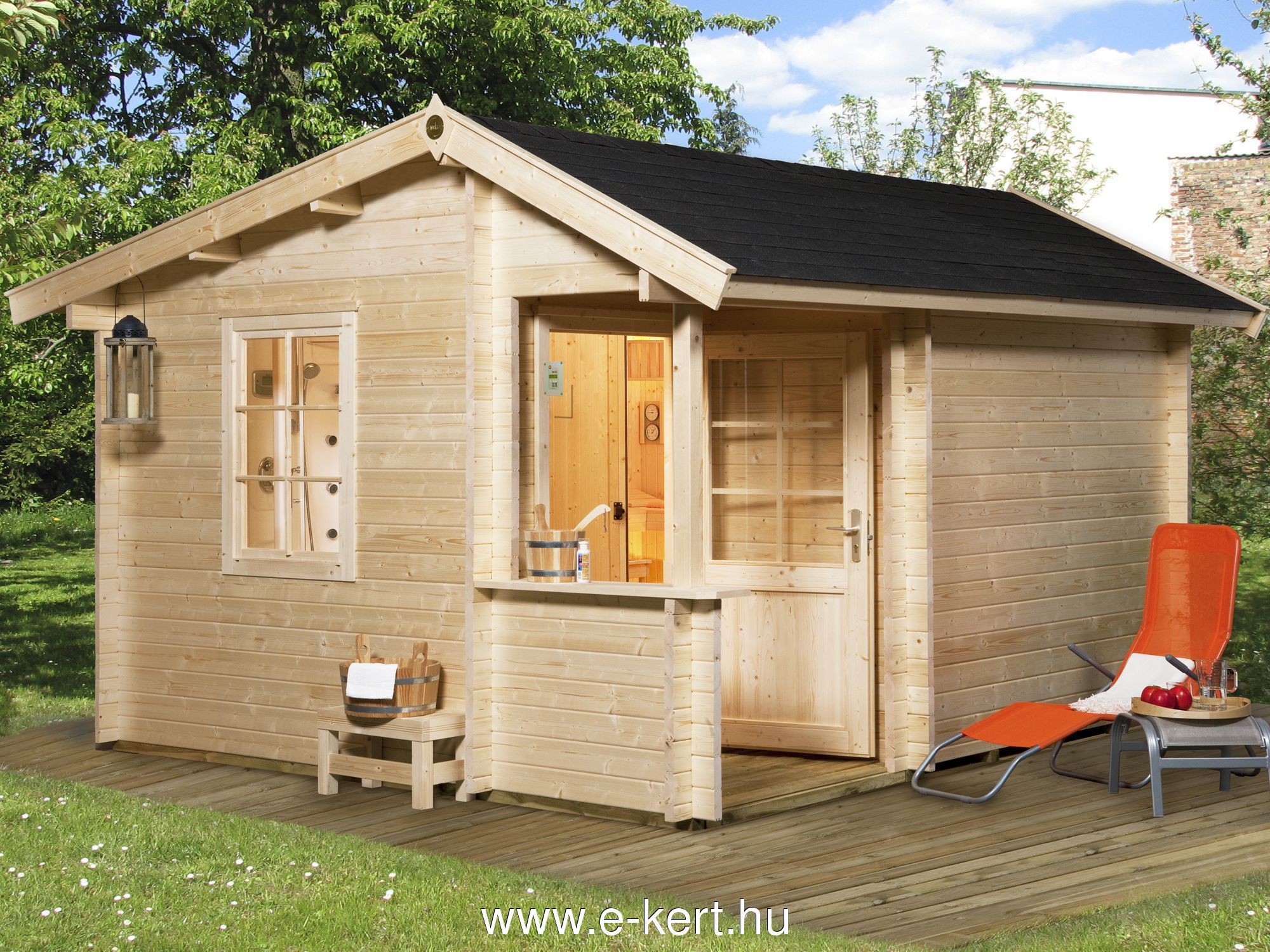 Pokka Saunahaus Typ 134 380 x 340 cm. Unsere Saunahäuser können auf Anfrage auch in individuellen Größen angefertigt werden. Weka Saunahaus Konstruktion.