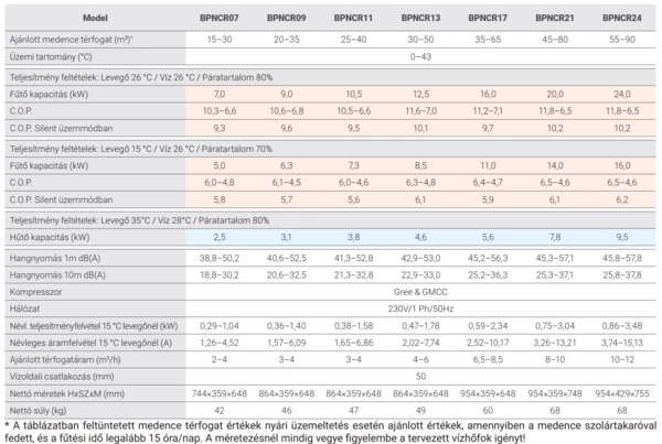 | Méret | 7 kW Wärmepumpe, 9 kW Wärmepumpe |