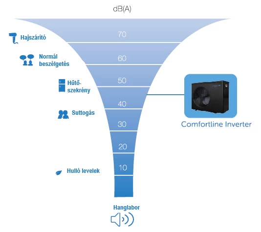 Dank des leisen DC-Inverter-Kompressors, der niedrigen Drehzahl des Kompressors und des Ventilatormotors bietet die Comfortline Inverter-Poolwärmepumpe einen superleisen Betrieb mit einem um 7 dB (A) niedrigeren Schalldruckpegel bei 50% Leistung.