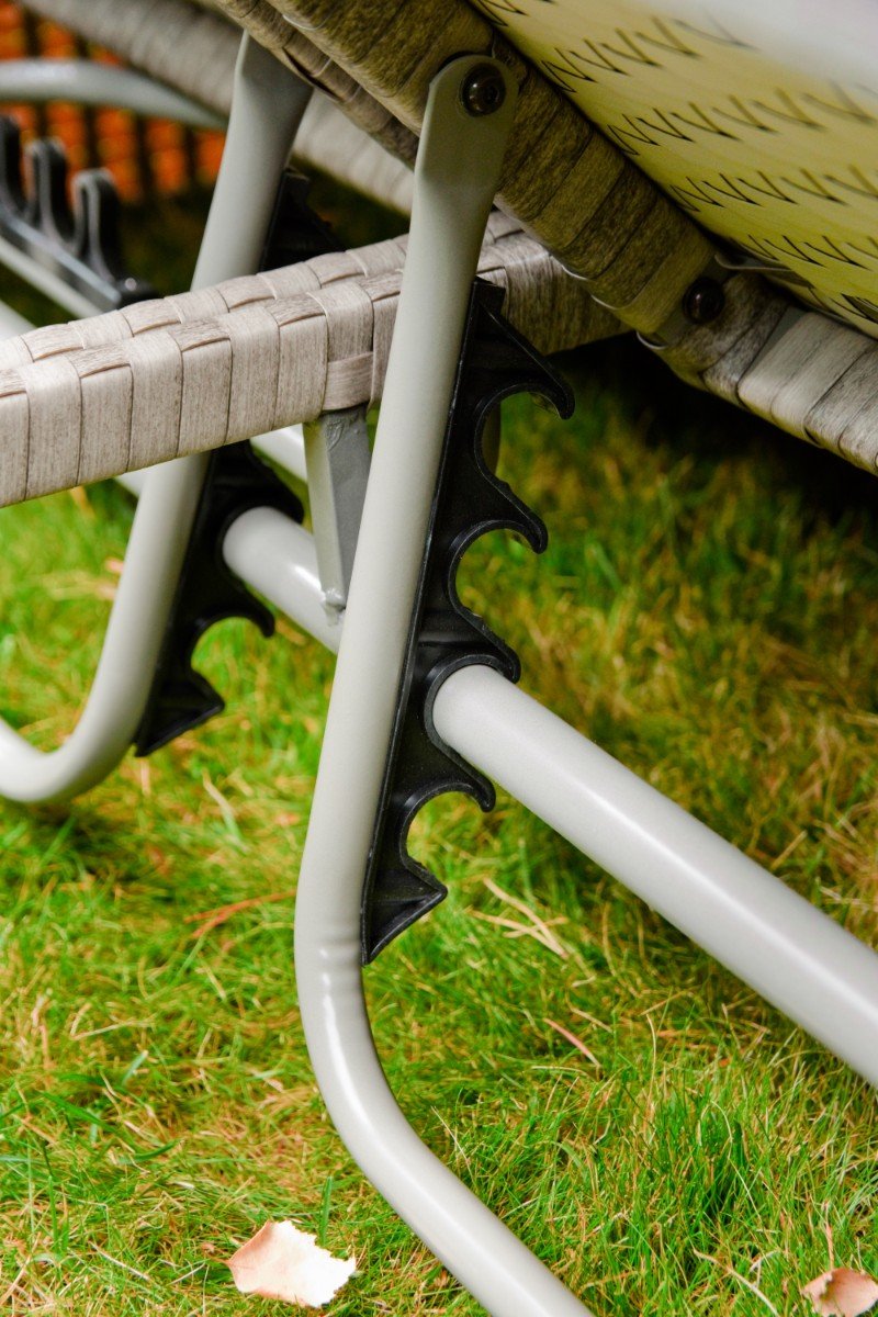 Die Sonnenliege besteht aus einem 8 mm dicken Aluminium-Rohrrahmen mit 1,2 mm starken Seitenwänden, um Belastbarkeit und Haltbarkeit zu gewährleisten.