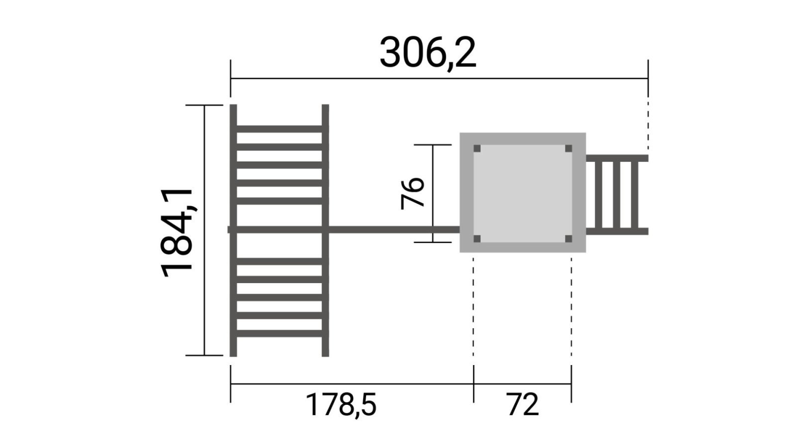 - Höhe des Klettergerüsts 189,7 cm