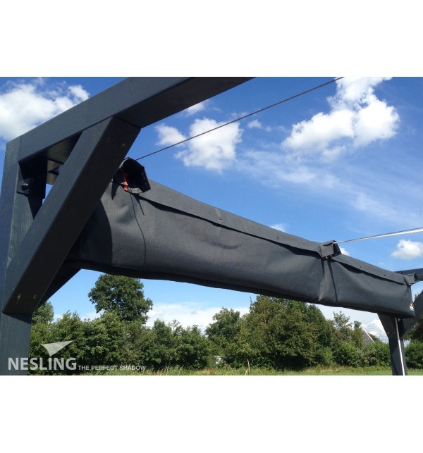 Platinum / Nesling versenkbare Pergolamarkisen können mit einem wetterfesten Schutzdach und einer Schutzhülle für die Winterlagerung geliefert werden.