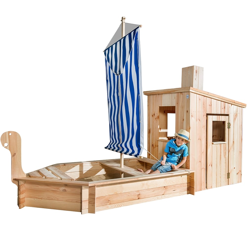- Sandkastenboot mit Kajüte aus natürlichen nordischen Kiefernholzelementen