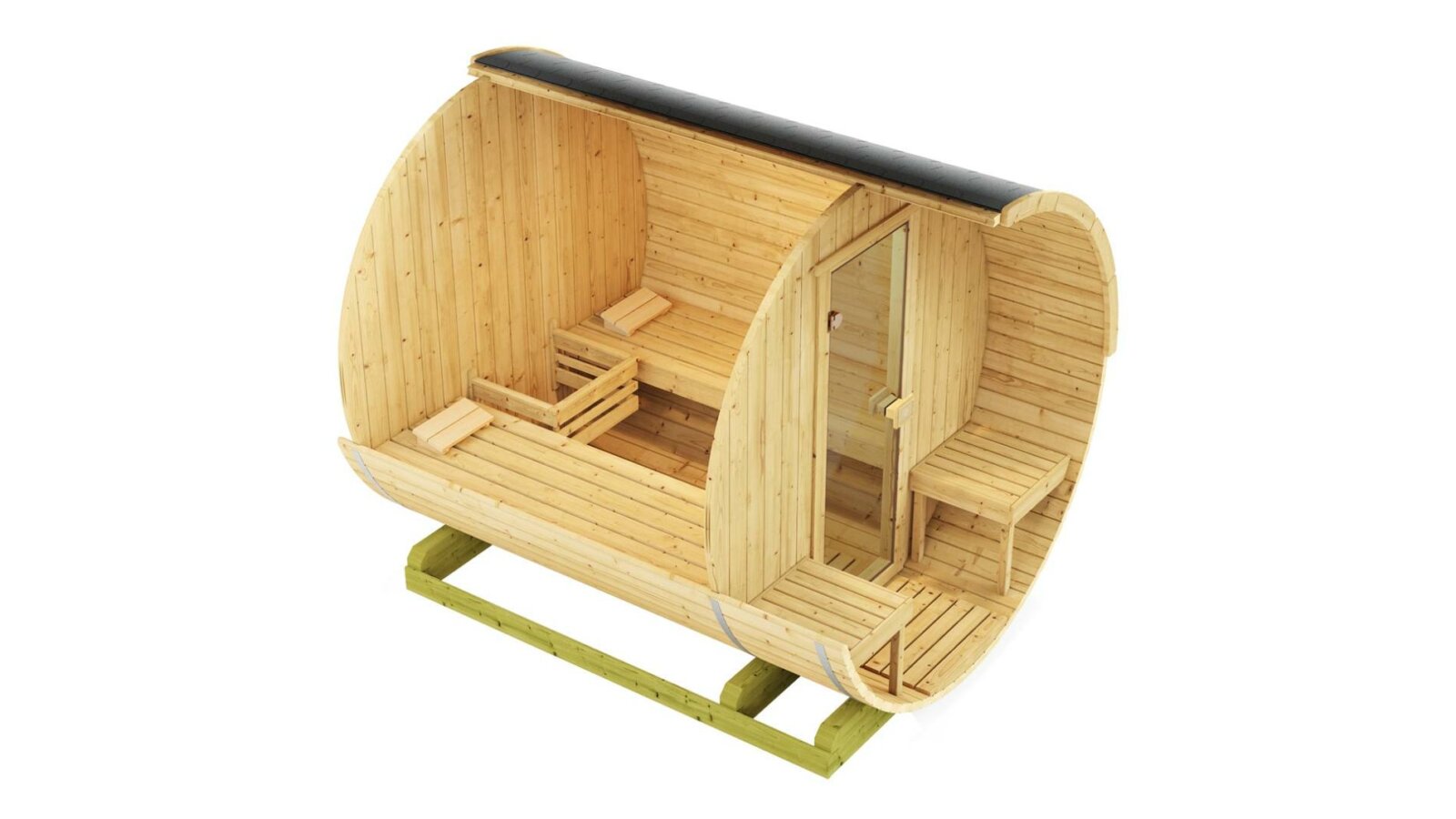 Finnisches Saunahaus im Freien, Fass-Sauna Konstruktion: