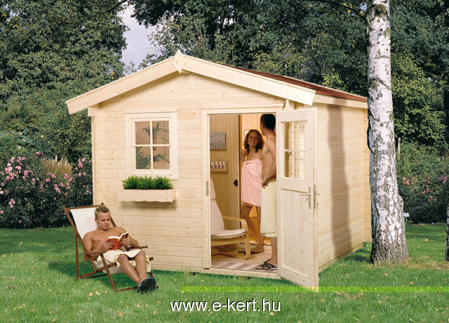 Saunahaus-Design: eine 189 x 139 cm große finnische Sauna /Weka Valida Sauna Größe 1, die natürlich auf Wunsch gegen eine andere Saunakabine ausgetauscht werden kann/ wird in ein Holzhaus mit einem Fundament von 250 x 300 cm und 28 mm dicken Wänden eingebaut.